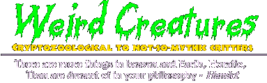 FLYING CREATURES - Resources Perhaps the most enigmatic of weird creatures reported have to do with flying entities, sometimes described as 'humanoid', other times as simply horrifying or grotesque amalgamations of known species such as monkeys or bats. Like tales from medieval times, gargoyle-like monsters in the skies are yearly reported around the world, sometimes attacking people. The infamous 'Thunderbird' of the Southwest has reportedly absconded with small children. From the ghostly to the ghastly, flying creatures make up an undeniable niche in the world of weird creatures photographed and encountered. |