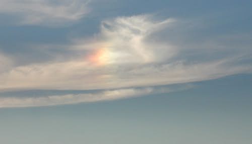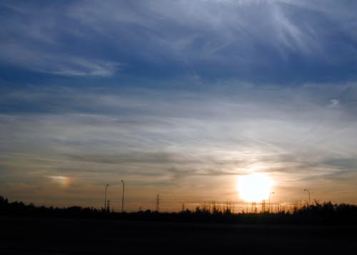 sun" is to the left of the setting sun. Cirrus clouds are very white