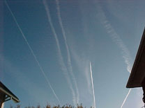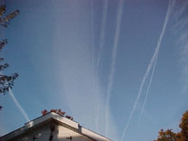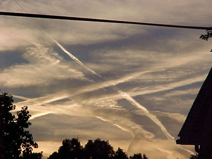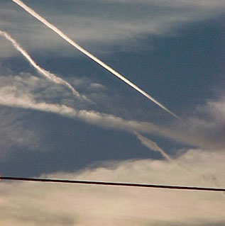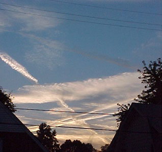 a.m. Eastern view; contrail artist flying overhead; Western view.