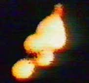 ex-AAF B-25 gunner. Two large white disc-shaped objects with green vapor