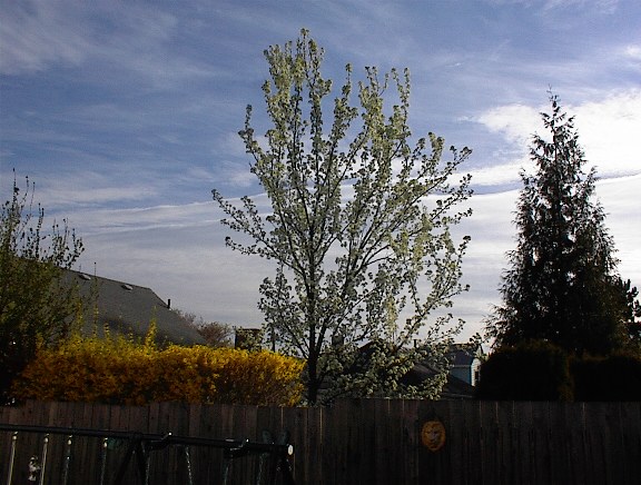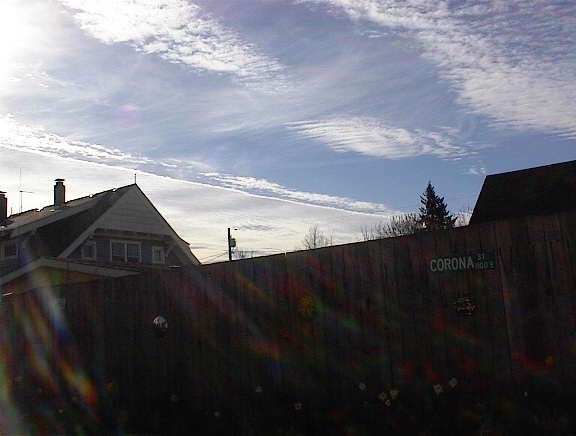 cloud stretched beyond the horizon behind the chemtrail. In the second,