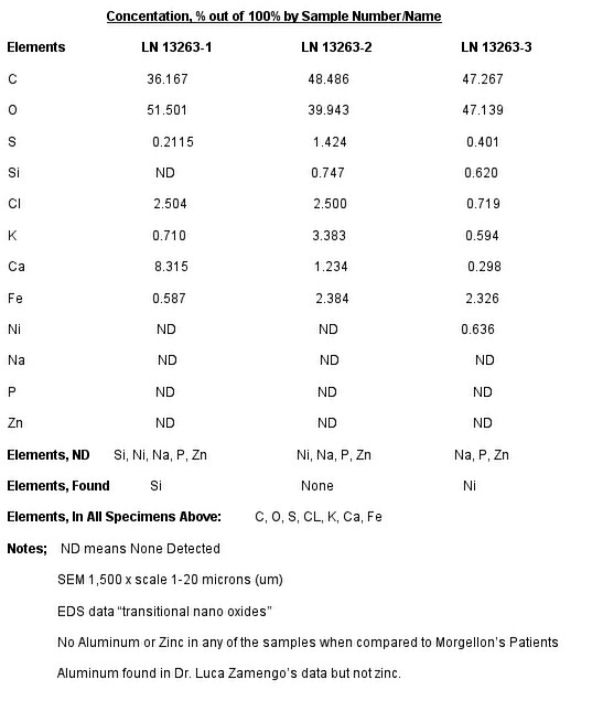 in the Morgellon's patients samples. The results found show a comparison