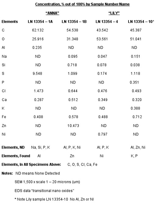- TABLE 1.1: Chemtrail fiber samples taken from a field