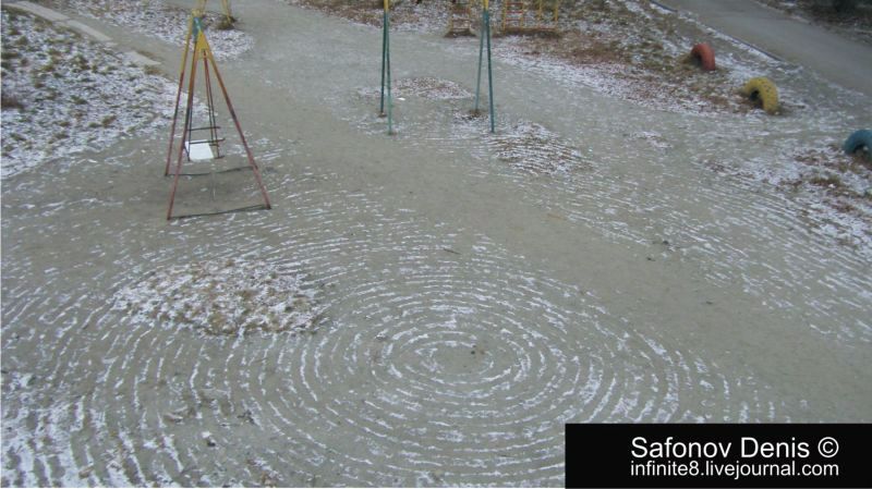| These photos courtesy of a friend's Russian wife.... YEKATERINBURG, Russia -- November, 6.2007. Russian scientists are curious: what source could cause these strange circles on the snow? |