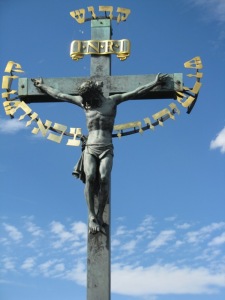 a great crucifix surrounded by huge gilded Hebrew letters that spell the