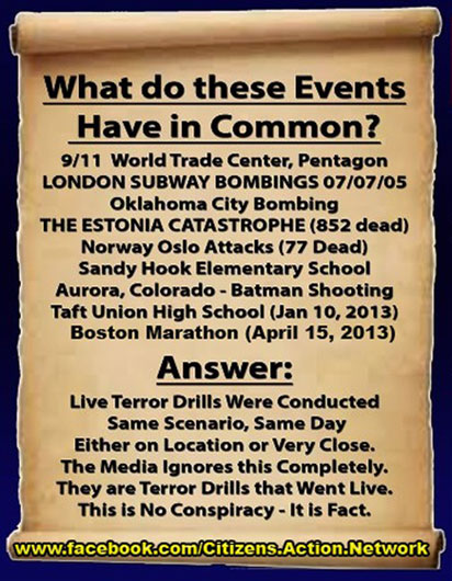 “Beginning sometime between May 7 and May 29, local, state and top level federal authorities will respond to simulated weapons of mass destruction attacks in three cities — Denver, Portsmouth, N.H., and the Washington, D.C.-area. Denver or Portsmouth will face either a simulated biological or a chemical weapons attack. The D.C. metropolitan area will respond to a radiological attack drill — which could range from simply an exposed container of radioactive material to a small nuclear detonation. Looking for Realism The congressionally mandated exercises are intended to examine how well local, state and federal authorities are prepared to respond to and together deal with the consequences of a weapons of mass destruction attack. “The goal of the exercise is to assess the nation’s crisis consequence management capacity under extraordinarily stressful conditions,” the Department of Justice said in a statement released Thursday. Specific dates and characteristics of the exercise are being withheld from participants, to make the tests as realistic as possible.” k) However a last minute alteration will be added to make the Washington D.C. terror-drill a bit more realistic. All members of the Supreme Court both houses of Congress and the White House will be required to remain in their locked offices for the entire ten day duration of the event: The entire 101st Airborne Division will be assigned to guard the government’s offices for the duration to protect the government from the people and to keep the government officials from leaving their offices—for any reason at any time. Failure to show up for “the drill” will carry a $10,000 dollar a day fine for every member of the government who refuses to participate in this mandatory drill that is not intended to actually injure anyone (unless of course a real nuclear-weapon gets mistakenly used). If someone decides that this simulated nuclear-attack might become another Reichstag Fire which enabled the end of the Democratic government of Germany: Then the Fourth Reich here could imitate The Third Reich then who arose from the ashes in Berlin, to hail Hitler as the new leader of Germany. It seems that the authors of this mandatory-exercise might have thought about what happened in Germany even before scheduling this farce? (k) “Volunteers and professional actors will play the roles of victims, who will be rescued, diagnosed, decontaminated and treated over the 10-day period. A “virtual news network” will be created that will broadcast on the exercises every hour on the hour. But the exercises will not be too realistic, authorities say. No weapons or agents will be released and, to minimize the risk of public panic or real-life accidents, emergency responders will not be speeding with lights and sirens blaring to the scenes of attack. “We’re doing as much as we can by way of outreach through the media to ensure that all of the residents in the jurisdiction or the cities that we’re exercising in know that they’re occurring, knowing that they’re safe from harm,” said Doug Johnson, the Justice Department’s spokesman for the exercises. Congress has provided $3.5 million for the Denver and Portsmouth exercises, which are called “TOPOFF,” reflecting the participation of senior officials. The exercise in the D.C. area, involving district and Prince Georges County, Md., authorities, is called National Capital Region 2000, or NCR-2000 for short. All Levels Involved The three exercises are expected to involve all key personnel who would respond to an attack: federal agency personnel and state and local emergency responders, including police, fire and emergency medical personnel. Though terrorism response exercises are conducted routinely across the country, “this marks the first time that an exercise of this scope, with the participation of top-level federal, state and local officials, has ever been conducted,” the Justice Department said. Mayors, city managers, state governors are expected to participate, as are some senior federal officials: Attorney General Janet Reno, Federal Emergency Management Agency Director James Lee Witt, and Health and Human Services Secretary Donna Shalala. Justice and FEMA will be the lead federal agencies in the exercise.” k) Of course with so much wrong about the specifics in this “article” it seemed apparent that this must be sarcasm, given that Janet Reno retired during the Clinton Years and Donna Shalala is long gone. Plus the time-line is totally screwed up the rest of this could almost sound real. But what an ideal opportunity to point out how fantastically apt this could all be. if the government itself was imprisoned by their own mandate ~ but for this quote it might have been taken seriously: “Department of Justice said in a statement released Thursday.” By last Thursday the government was too deep in denial over the current false-flag unraveling in Boston to release anything new. One could have surmised that if the worst had happened, USI would be permanently crippled, and we’d all have a second chance to take our freedom back! “Though many drills come and go without an event, TOPOFF drills have been known to go live in the past. People that have been awake for awhile and have read enough are well aware how real this could get, they’ve been ramping up these drills and ramping them up and its only a matter of time until they take it live, I pray that hour isn’t approaching. I find it troubling how they’ve set the stage for trickery in withholding details to shock the participants, and this sets the stage for a small contingency to sneak around and carry out actual acts of terrorism" I hope good cops are vigilant, even if they have to do it off duty, and keep a close eye on all the activities leading up and through, and thwart any acts of terrorism carried out under the umbrella of an exercise. Perhaps this article was posted from ABC curiously dated May 