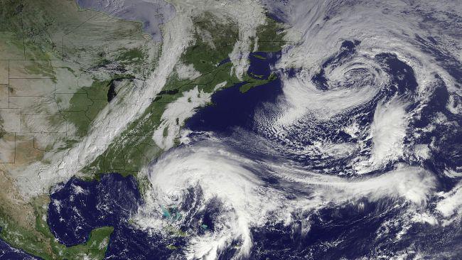 this image taken by NOAA on Friday, Oct. 26, Hurricane Sandy is seen