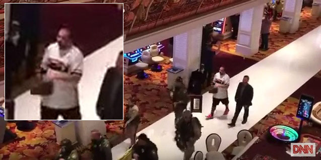 Through And Out Of The Tropicana Casino - Note How First Guard Has Finger ON