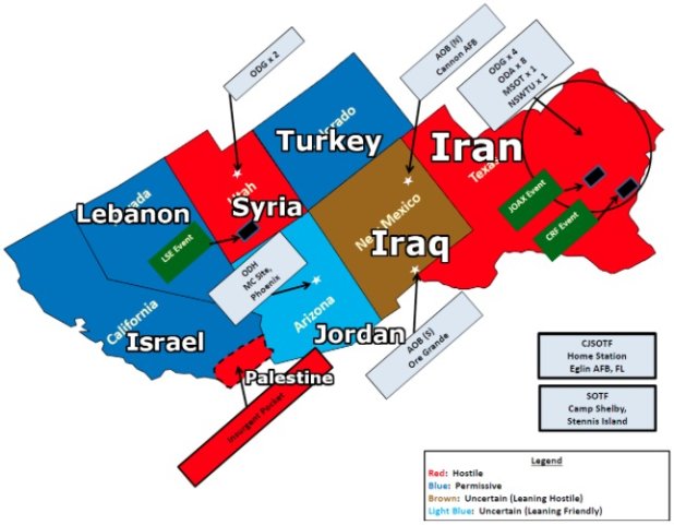 Jade-Helm 15 has just declared itself as the quintessential war-game to test their self-created policies that will be used to bomb every nation listed above back to the stone-age, except Israel. This is the ultimate screw-up that’s being offered to the world, by this map, which comes from USI Supreme Operational Command that, in the process above, will feature eight long weeks of invasions into the homes, workplaces and the lives of the Americans that live and work in the states above, plus Louisiana, Alabama and Florida. By renaming the above US states as enemy-nations that have been targeted for total obliteration, USI-Israel is using disinformation to delude American citizens into the belief that neither they, nor the citizens who live in those US States, will be harmed by this supposed “exercise” - But there is zero proof of that purported ‘fact’. What this “exercise” will do, regardless of the stated goals, is to subtract eight weeks and all their current “INNOCENCE” from the lives of everyone who lives in the portion of America shown-above, of the once thought to be secure American states, that will “practice” being the targeted-people to be invaded by three different very real armies, all of which now hold the lives of the Americans who live in the targeted-states now, as official Enemies-of-the-State. It’s Trust & Betrayal at the Core http://www.rense.com/general96/trustandbetrayal.html