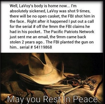 As the news above was being released, a different story of a newly discovered murder in Utah was being unveiled. This was about the death of the son-in-law of Shawna Cox, at her home in Utah. This story will no doubt be a target of the Gag Order that a Federal Judge is expected to issue today in Oregon. “As a footnote, and as a precondition of her release, Shawna Cox was ordered to have all guns at her Utah home removed. After the guns were removed, her son-in-law, sitting in close proximity to the guns was suddenly and mysteriously caught in a fire in which all the guns and ammunition went up in smoke. Shawna’s son-in-law was killed in the event.” Just