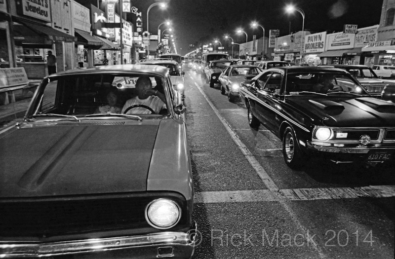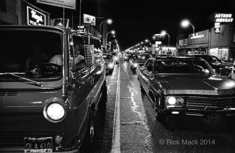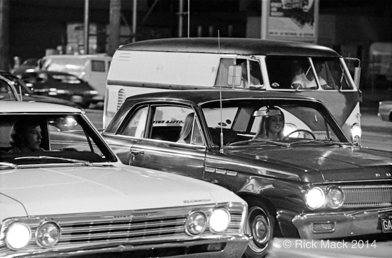 Purely by happenstance, I discovered the new resurgence and wonderful energy levels of the evening car culture on Van Nuys Boulevard during the late spring of 1972. Since I had just completed several years of photography in the Art Department of California State University at Northridge, I now had the photographic skills I would need. It was an easy step to assign myself the task of capturing what I could of the essence of the boulevard scene with a camera. This might also be great fun, after all, I grew up cruising that boulevard.