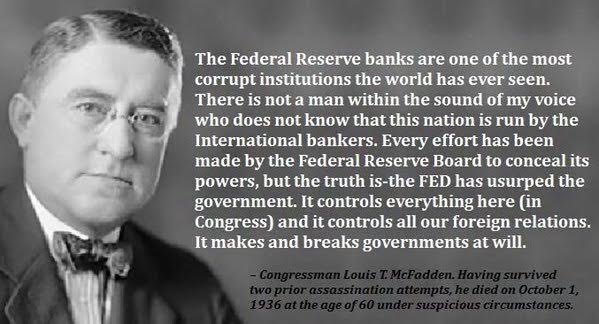 Congressman Louis T. McFadden Born: 1876 Assassinated: 1936 What have the demagogues in the American government done for our economy or for the starving masses of humanity? They are reducing the hungry of the world by killing them with bullets, rockets, and bombs, while making their home lands radioactive for the next four and a half billion years with DU munitions (depleting uranium). Could not the hundreds of billions of dollars our government spends a year on killing people be better spent on our own country, making it more livable?* *Factual note: The typical American worker has to work for a full month to earn as much money as one of the International Banker’s corporation’s CEOs is paid in one hour. Both the Democrat and Republican political parties support the bankers who are causing this form of fascism. Now most Americans are too stressed over their mounting bills to give much attention to their lost freedoms or their country’s hideous crimes against humanity. Why do American Marines guard the opium crops in Afghanistan if not to addict millions of Americans to heroine and to thus populate the US prisons with slave labor? US/NATO/Israeli intelligence agencies create, fund, equip, and direct Middle Eastern terrorist groups to justify the endless US War on Terror and to unite a benighted public behind a criminal American government. Why else are we given a never- ending stream of sports coverage, along with the latest happenings in Hollywood, except to distract us from the real problems of our day? Why else are Americans made sick with leaking nuclear power plants, exposed nuclear fuel rods, vaccines, chemtrails, prescription drugs, and chemical-laden GMO foods, except to make us apathetic about our serious problems? Now with staggering speed America is being transformed into a Soviet or Stasi-styled police state. We are spied upon around the clock, with what looks to be camps for future internment scattered around the country for those who are awake to the massive subversion of our country. For decades, Americans have been systematically betrayed by their government, media, and major institutions at an ever increasing rate of speed. Yes, Mr. and Mrs. America, we are being ground into scraps to be disposed of by our government, no matter if you recognize it or not. But perhaps we can say that the most serious assault on us yet is the attempt to eliminate our computer freedoms, thus cutting off our vital ability to wage a peaceful info-war against those who have long been seeking to impoverish, enslave, and kill us. Americans for the most part are childlike, knowing little of their national history, allowing thieving politicians to bankrupt their nation (and themselves), while being robbed of their Christian culture. What positive prospects are there for Americans? None whatsoever if they lose their most vital organ a free Internet. In the meantime, people in our government and media claim there is something called digital terrorism that must be combated. I say the US government has already committed too many crimes in their alleged attempt to “prevent” terrorism. Others say the Internet is broken. The Internet is only broken for those who intend to eliminate most of us while enslaving the rest. Any person in the government or the media who professes that the Internet is broken and in need of governmental repair is our enemy and is a traitor to mankind. Like all US legislation, regulations, and Executive Orders, expect any attacks on our Internet freedoms to be called something constructive. These self-styled designations will be wholly inappropriate and meant to deceive. Net Neutrality is perhaps another governmental scam, meant to increase the United States Federal Communication Commission’s under-handed control over the Internet. What would the implementation of Net Neutrality likely mean in real terms for American freedom fighters? At best, we would retain our isolated voices. At worst? We would lose our voices, while in prisons or in graveyards. Expect to hear about how Internet hackers have become a major cyber security threat, who could bring down our orbiting spacecraft or the US power grid. It is guaranteed that in the coming months, you will hear a lot of noise as to why government intervention into the World Wide Web is an absolute must. Expect agents from our many US intelligence “services” to do what they usually do: covertly create false flag attacks. This time blaming them all on a broken Internet that must be fixed (read controlled). US government regulation of the Internet (or of anything else) might be made to sound like a good idea, but implementation of it will prove to be a blow to our freedoms, and perhaps our lives. In our discernment of truth, we should take note of what is being well publicized, as it is likely to be propaganda such is life with a controlled mainstream media* and a despotic government. *Like television, the Internet is dominated with propaganda but is currently our only source of truth. There are informed and dedicated patriots who have claimed that US freedom fighters number more than one percent. I hope they are right, as America needs well-intended, bright, and brave people as never before in her history.