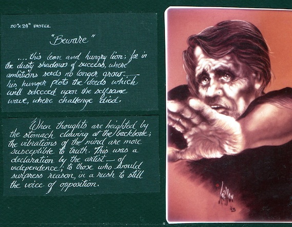 For those who do not know: “The Ides of March” is the ancient Roman Reference to March 15, of every year. Historically the reference was to the murder of Caesar, on March 15, 44 B.C. by the Roman Senate. For most Americans it used to be Income Tax Day, until that was moved to April 15, possibly to avoid putting ideas into the angry minds of those opposed to IRS. During the rise & fall of Caesar and his estrangement from the populace, as well as from the criminal ways of the Senate, there were many things then, that are still with us today. The 'criers' that read out the orders of Caesar and the Senate to the public, was indeed the CNN of 44 B.C., and those words were feared at least as much as are the daily global lies that flood the airwaves of the world today. But the problems of the Roman Empire were also in keeping with what we still react to now. The Roman Legions became suffused with foreign-blood and foreign tastes, to the point that the Roman Legions themselves could not be trusted by Rome. And when the Senators began to see the threat to their mini-empires, there was no choice—Caesar had to go. This was the Roman version of 'REGIME CHANGE' inside an ancient empire that seemingly had no other enemies It appears that we are on the verge of repeating that history, both with the rise of Trump and the impending death of Obamanation. The wreckage of the dying United States is presenting us with this version of 'The Ides of March', in which global-collapse is hovering at the edges of global-disaster, while world-financial mayhem lingers amid political chaos that has never been more conflicted: Yet through it all there's a whole new strain of outrageous criminality that refuses to be bound by any laws, anywhere else in the universe. This has to stop, because it cannot survive the onslaught that these policies are creating virtually everywhere upon the planet. Consequently, the fabled warning this year represents a confluence of ideas that has come together for whatever is to transpire - from this coming Tuesday and beyond... When I was just starting out, I worked in Pastels. In 1964 I did this image of something which is still at the core of what we all will soon have to face again, The image is weak but the words described the many problems then, that are perhaps more urgent now...
