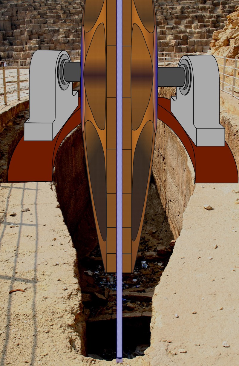 Referred to as a boat pit, this trench answers the question of how they would mount a 37 ft diameter saw