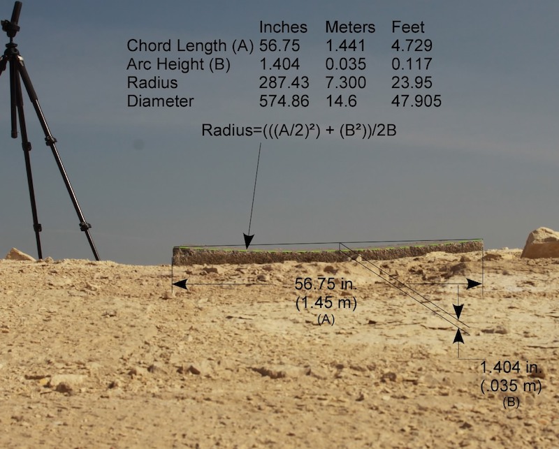 Determining the surface radius using the cord length and sagitta (cord height). The calculations indicate a radius of 23.95ft