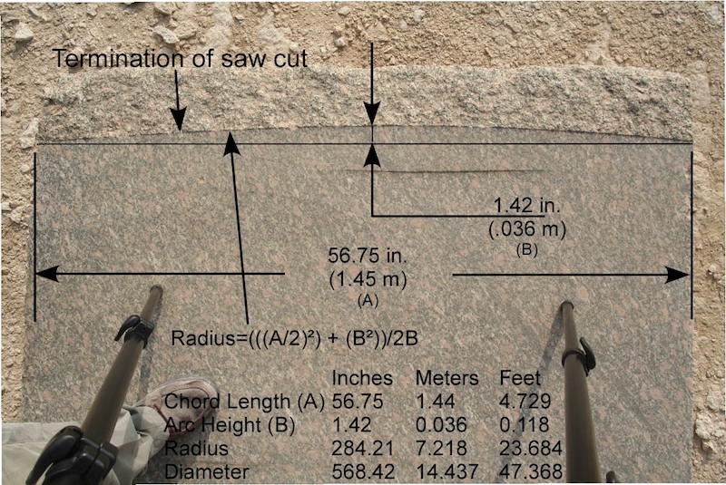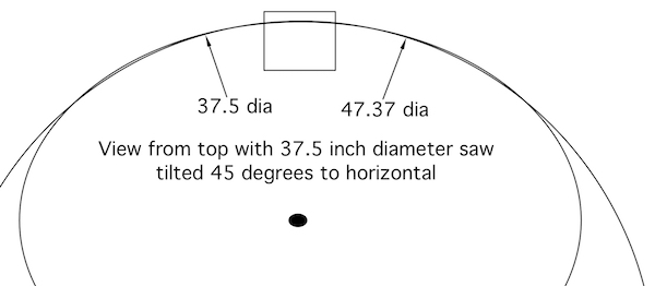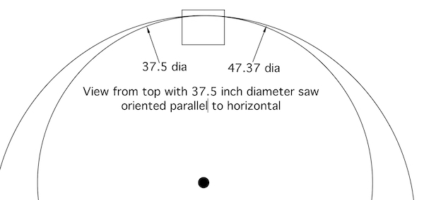 View looking down showing block radius with 37.5 feet diameter saw in a horizontal position