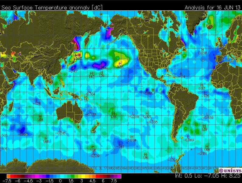 | Sent to me by a guy in the BBC who cited this link - http://weather.unisys.com/surface/sst_anom.gif |