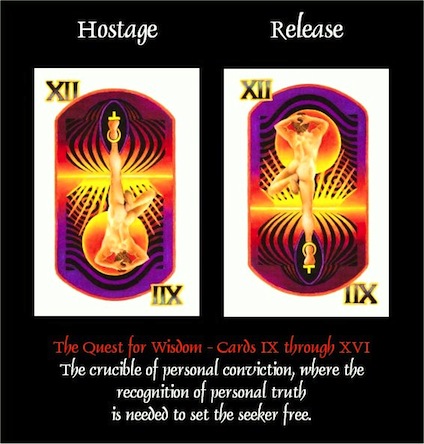 This line of fire symbolizes “the invisible means of support” that’s necessary to keep determined people alive. In “HOSTAGE” the figure is holding him or herself captive: By refusing to accept whatever “truth” in their lives, they have totally refused to accept, to this point. The secret to these two views of the same figure lies in the fact that all the ‘hostage’ needs to do is to accept the truth that he or she already knows and recognizes. Just by admitting that fact alone, to oneself - that expression is all it takes to free the figure from his or her artificial bondage! And that’s what constitutes any individual’s complete RELEASE!
