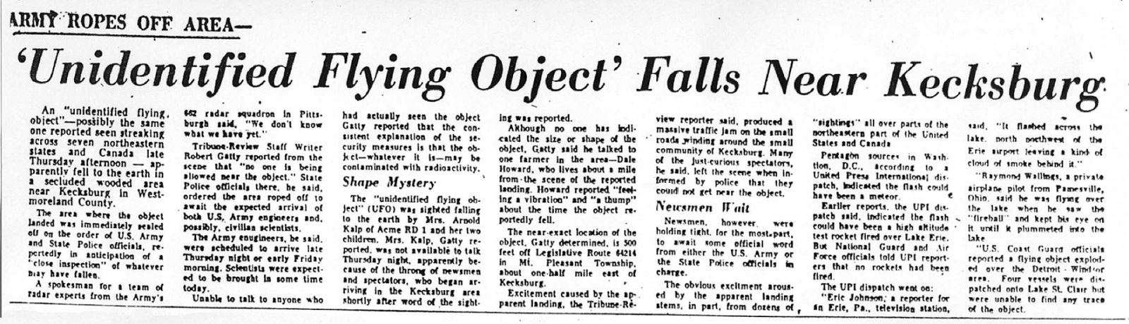 Two days after the incident occurred at Kecksburg, his firm received a large