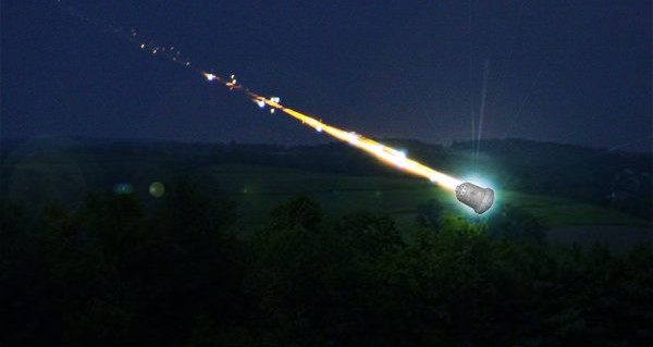 The object was silhouetted by floodlights behind large silk -parachute-like