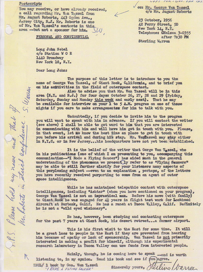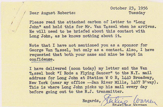 tour. 004 is Mr. Warren's actual letter to radio personality Long John Nebel