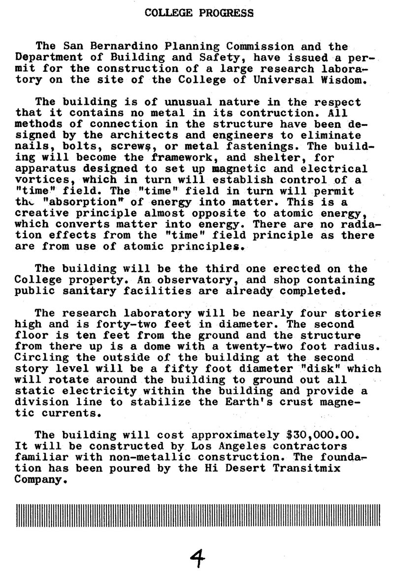 efforts in building the Integratron building and multidimensional phasing