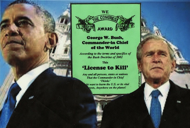 Most people have forgotten where this illegal “permission” came from: “To Kill Any and All persons, states or nations, That the Commander-in-Chief ‘Thinks’ Might want to harm the U.S. or its vital Interests, Anywhere on the planet.”