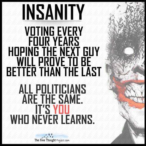 Of course the obvious facts are always overlooked, in favor of keeping the total farce of what passes for politics alive, long enough to save the political-futures of hundreds of thousands of traitors that have all become losers now, along with the talking muppets that continue to parrot the 'politics' that's all been lies since before WWI.''