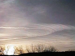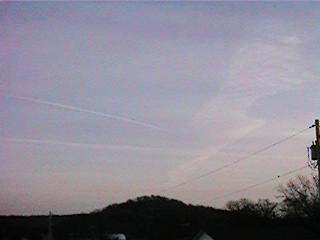 fifty miles east of Tulsa, Oklahoma at 0745 hrs. Sky, other than contrails,