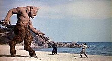 ![]() Sinbad tangles with the incredible 'Cyclops' in The Seventh Voyage Of Sinbad (1958). |