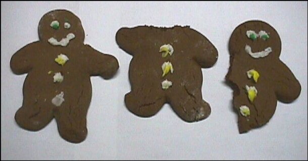 the while furtively studying a lone 'Mr. Bill'-looking gingerbread man