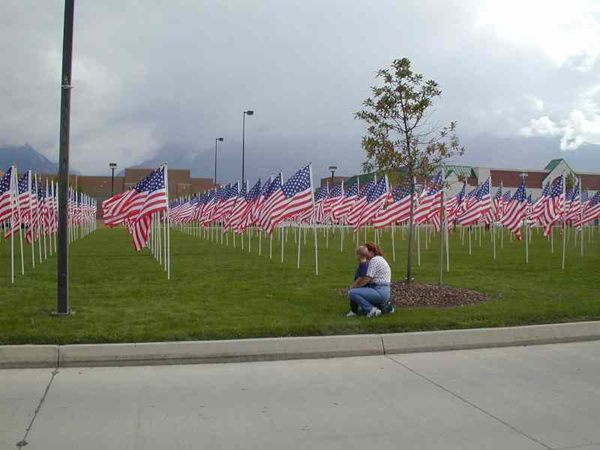 was the sound of the flags blowing in the breeze. A reverent silence prevailed