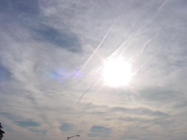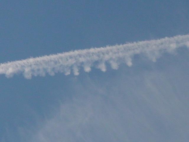 aerosol spraying...these are typical chemtrail 'clouds' forming a nearly