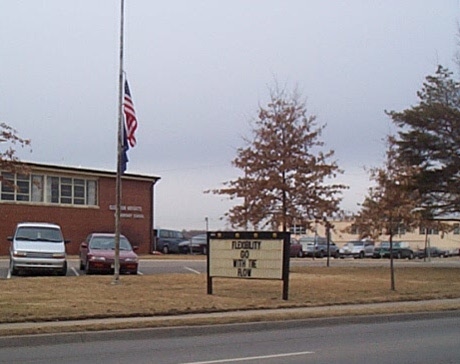 It is posted outside an elementary school in Topeka, Kansas and reads,