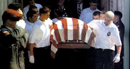 Annie back from war being laid to rest. The lush summer blossoms of their