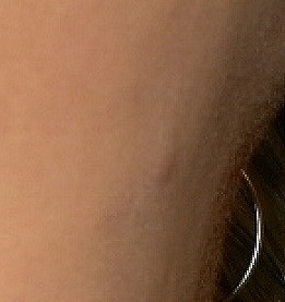 marks/puncture holes in the shape of a triangle on the side of her neck.