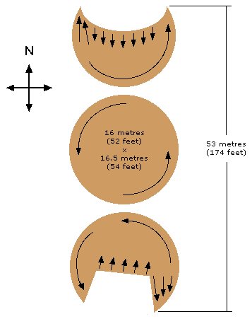 The formation is a circle with two attached crescents, 53 metres (174 feet)