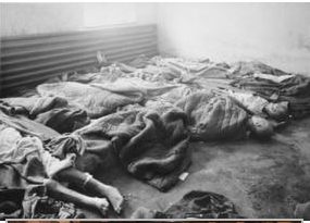 (Auschwitz Block 11(l.), DC's cadaver display (r.)).