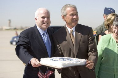 McCain a birthday cake in the middle (2005) of Katrina?
