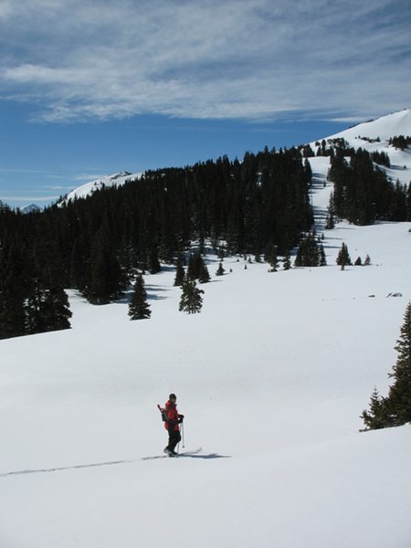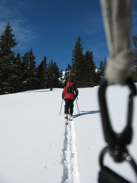 to ski from 9,000 feet to our destination at 11,300 feet near the tree