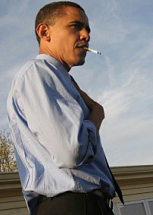 If that is the case, he would not have a cigarette in his mouth.