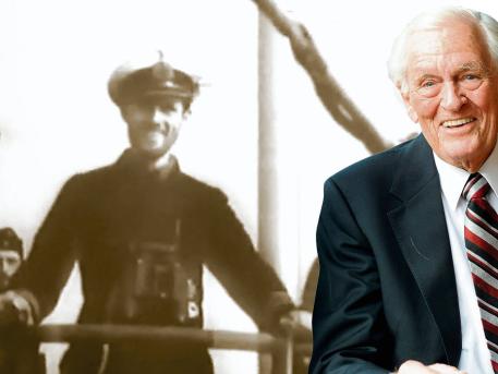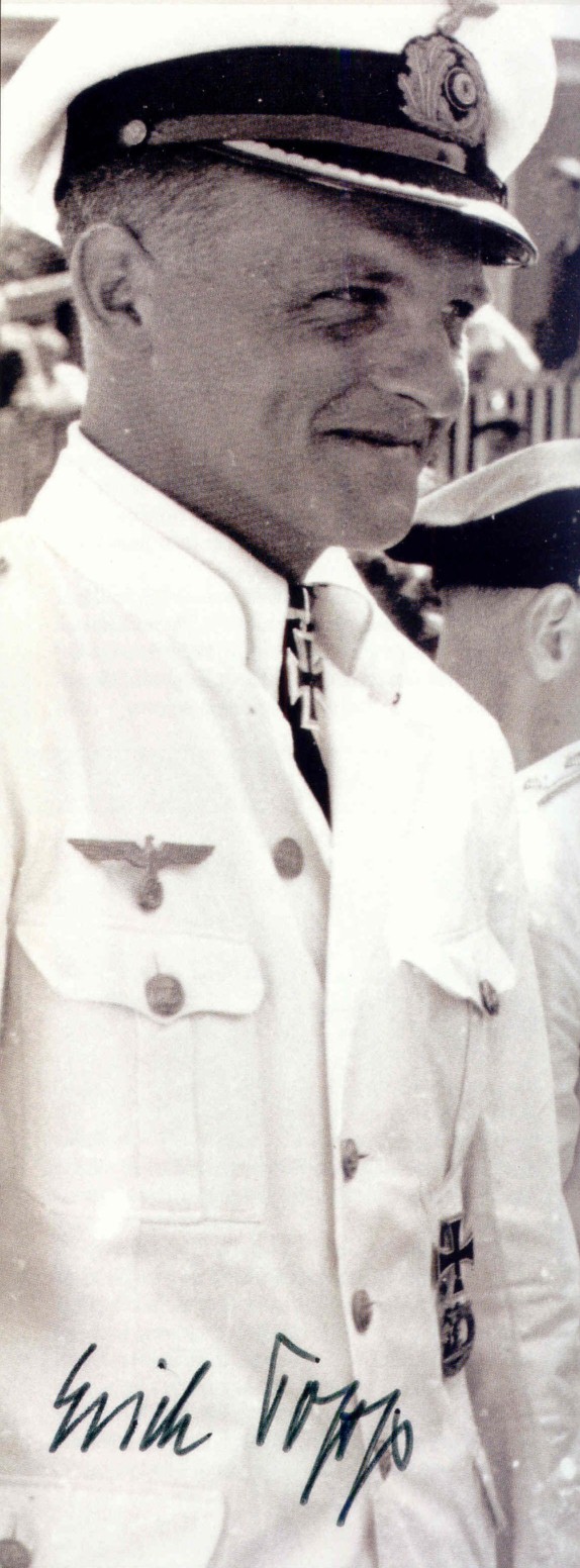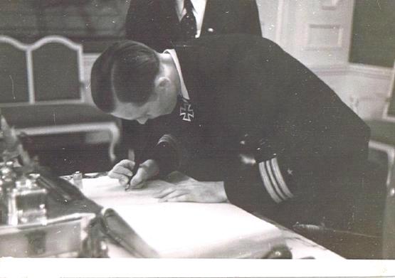 These photos are all Korvettenkapitaen (same as a US Navy Commander) Reinhard Hardegen. He was commander of a coastal boat U-147 then commanded a long range Type IX-B and came to operate off the American east coast in January 1942 in Operation Paukenschlag. It means Drumbeat but not just any drum - it was the rolling of kettle drums as in a Wagnerian opera. He operated off New York and could see the swimmers on Coney Island with binoculars from his bridge - in daylight! He sank the first ship in American waters; had two war patrols against the USA - the second off Florida's east coast. For his first patrol he was awarded the Knights Cross - only 145 U-Boaters were so decorated. For his second patrol, he was awarded the Oak Leaf to the Knights Cross - only 28 U-Boat Skippers were so decorated in the war. We have 7,700 Members; he is #102 and has been a Member since 1985. This March he will turn 100 years of age. |