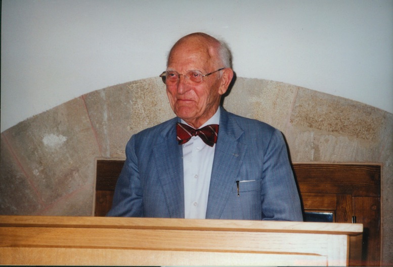 | The Photos below are of Erich Topp. He was Sharkhunters Member #118 and joined in 1985. He was the third highest scoring submarine commander of any navy in WW II, sinking 36 ships. He sank the first US Navy warship (USS REUBEN JAMES) in error, thinking it was one of the 50 destroyers we gave to England. This was 31 October 1941 and the US was not even in the war yet. He was decorated with the Knights Cross (only 145 U-Boaters were so decorated), then the Oak Leaf to his Knights Cross (only 28 U-Boat Skippers were so decorated) and also the Crossed Swords to this decoration (only FIVE U-Boat Skippers were so decorated). He commanded U-57 then U-552 (the Red Devil Boat) and finally U-2513. He joined the new German Navy in 1955 and retired at the rank of Konteradmiral (2 Stars). |