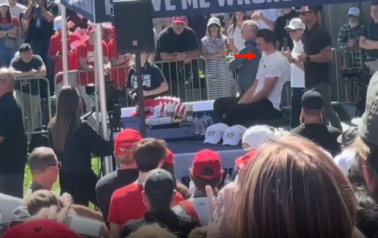 the highly suspicious Brown Shirt Man actually looking UP behind him