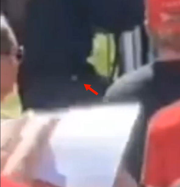 Here is a freeze frame of the apparent bullet seen against a backdrop of someone's black pants...