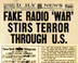1938, "Fake Radio 'War' Stirs Terror Throughout U.S." Also ROSEBUD: